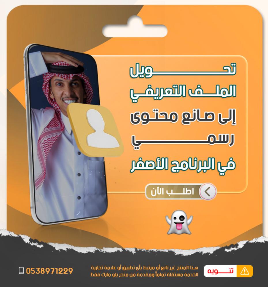 نقدّم لك خدمة تحويل ملفك التعريفي داخل البرنامج الأصفر إلى ملف مهني احترافي، يمنح حسابك مزايا إضافية وظهور أعلى ويساعدك في بناء هوية صانع محتوى واضحة.